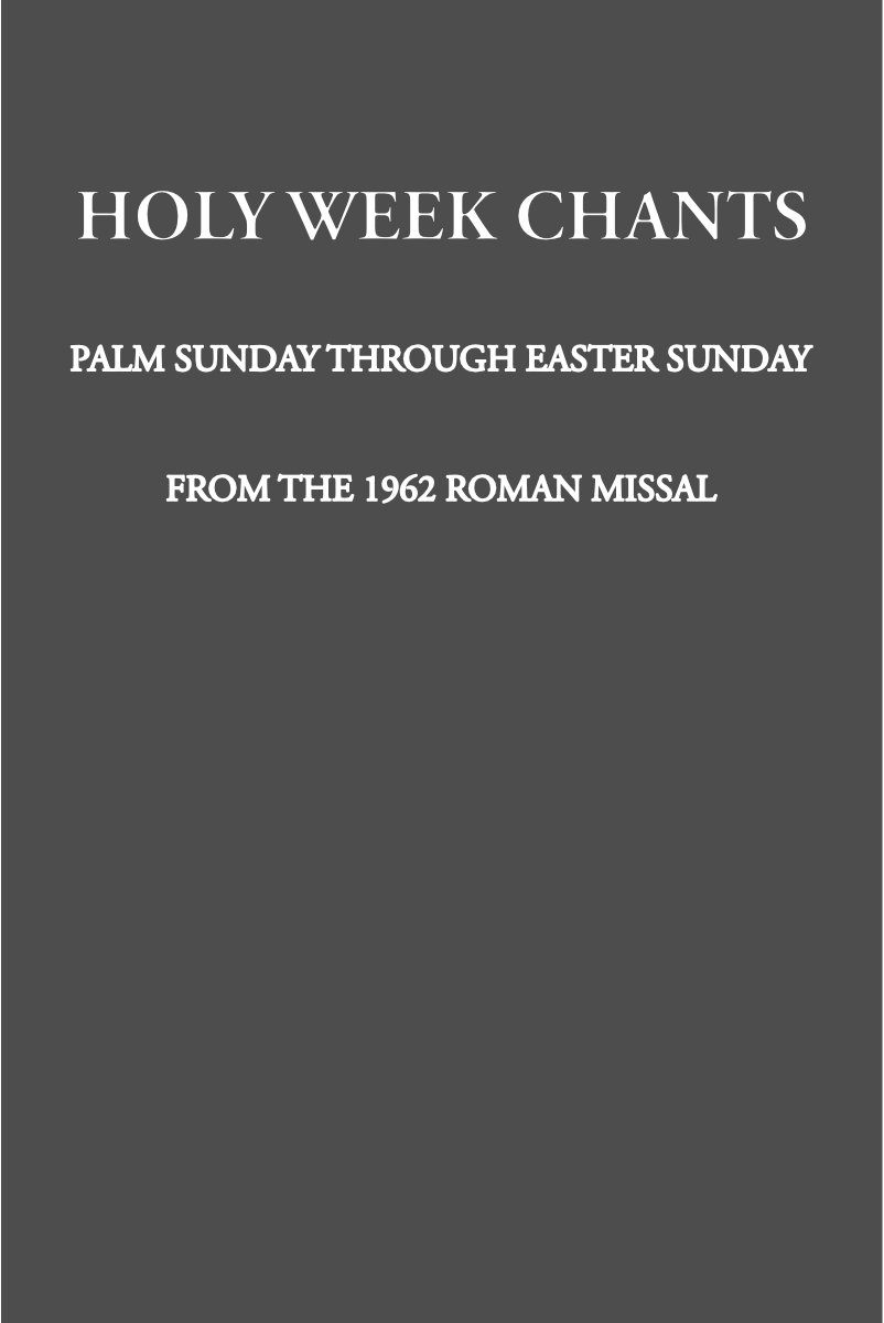 Everything needed to sing each of the Masses (and other services) in Gregorian Chant, with Psalms from the Vulgate, and Antiphons, Hymns, and Mass Ordinaries.